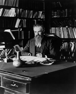 John Wesley Powell (1834-1902) was born with a keen interest in science and nature. Beginning in early childhood, he studied botany, zoology and geology without the aid of a teacher. As a youth, he went on many collecting and exploring trips throughout the Midwest. After serving in the Civil War, Powell became a museum curator and lecturer on natural history. But despite having lost an arm in the war, he declined a permanent appointment in favor of exploration of the American West. In 1869, Powell embarked on his first voyage down the Colorado River to explore the Grand Canyon. Powell surveyed and mapped the region while naming many of its features.